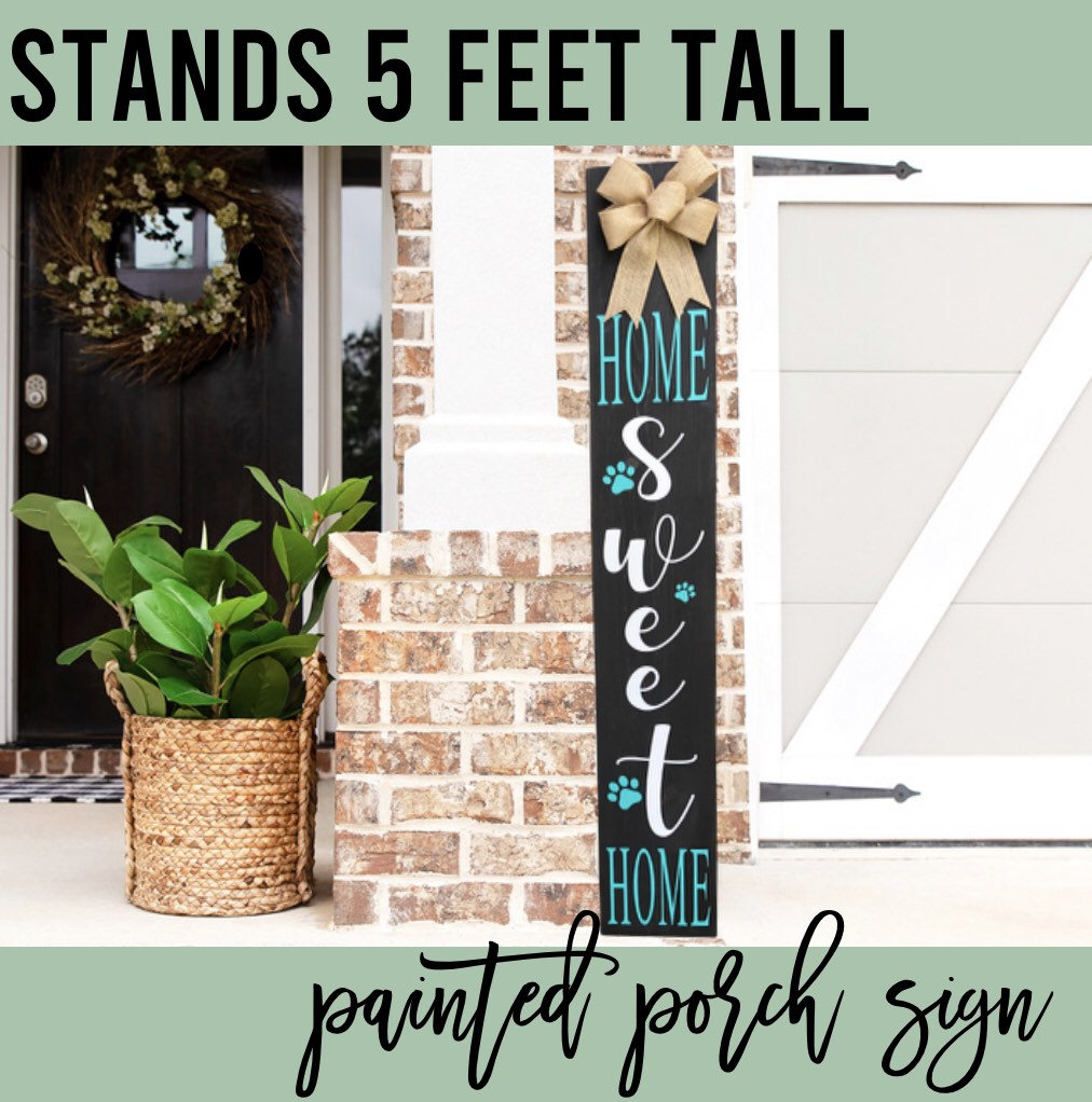 Does your front porch need some new life? This beautiful Home Sweet Home Sign with pet paw prints for your front porch is one sure way to create the curb appeal you are looking for and is very inviting outdoor decor! It makes as a great statement piece for your front porch and all of your neighbors and friends will be asking where you found such a unique piece. Maybe you’ve just purchased a new home and are thinking ‘do I need this for our first home?’…. Yes, yes you do!