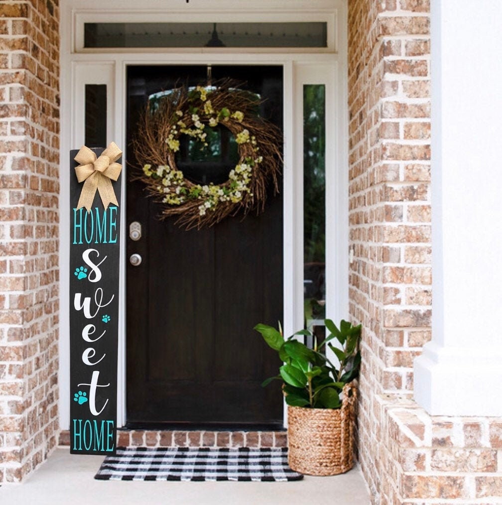 Our porch signs measure 5 FEET TALL and are 9.25 INCHES WIDE, made from solid pine wood. We offer several stain colors so there is a lot of variety to choose from! Due to the nature of wood, each wood sign is unique in its own way. Each piece of wood takes stain differently and can slightly differ in color. Knots and grain of the wood will vary with each piece which gives it such beautiful character. After we have stained the piece of wood, we then bring it to life by painting on the design! We achieve crisp clean lines every time we paint, and the sign just turns out so beautiful!