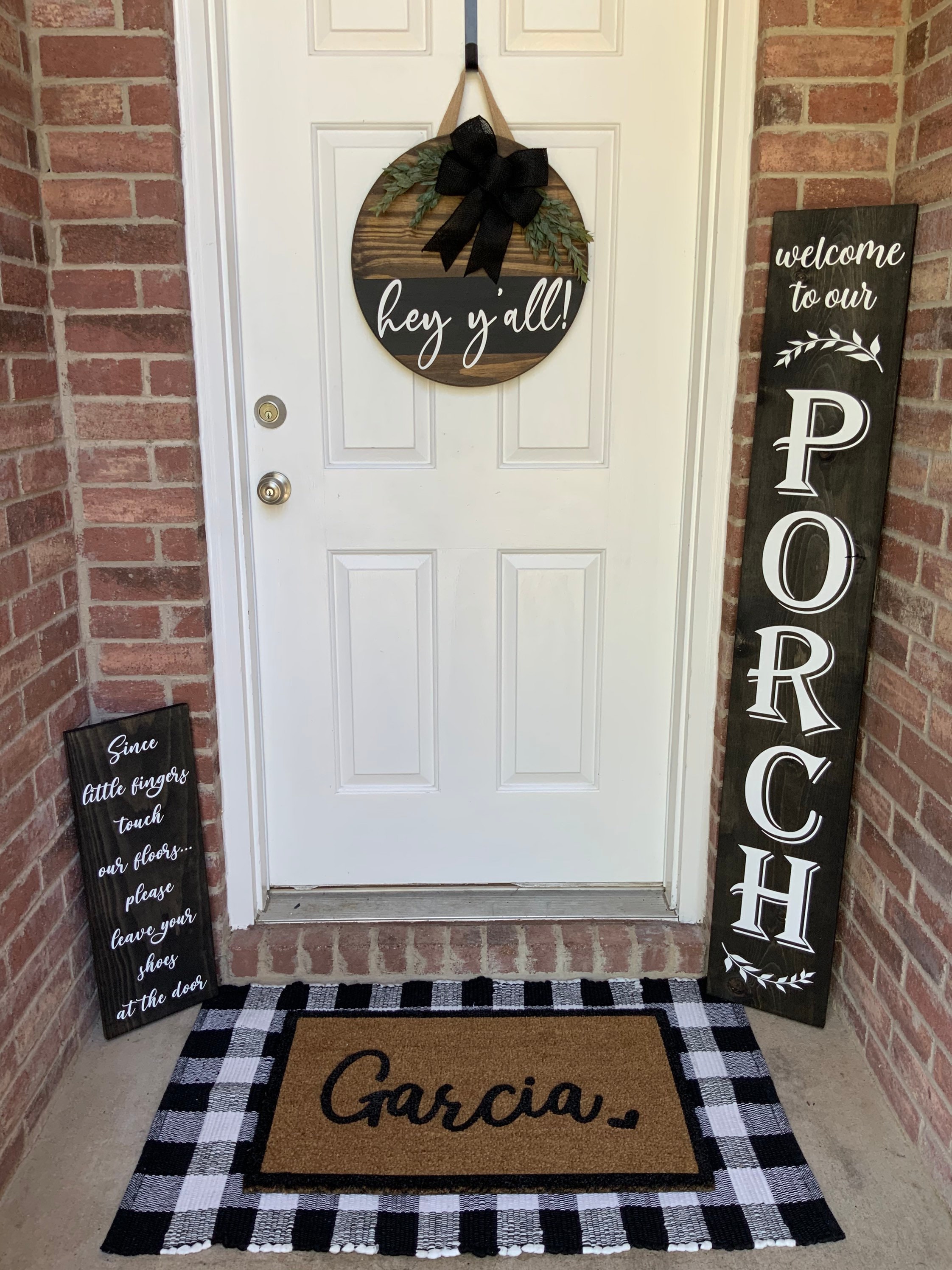 Does your front porch need some new life? This beautiful Welcome Y'all front door sign is one sure way to create the curb appeal you are looking for and is very inviting outdoor decor! It makes as a great statement piece for your front porch and all of your neighbors and friends will be asking where you found such a unique piece.